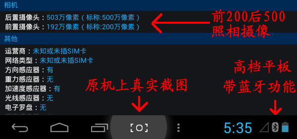 攝像頭:前200W像素,后500W像素