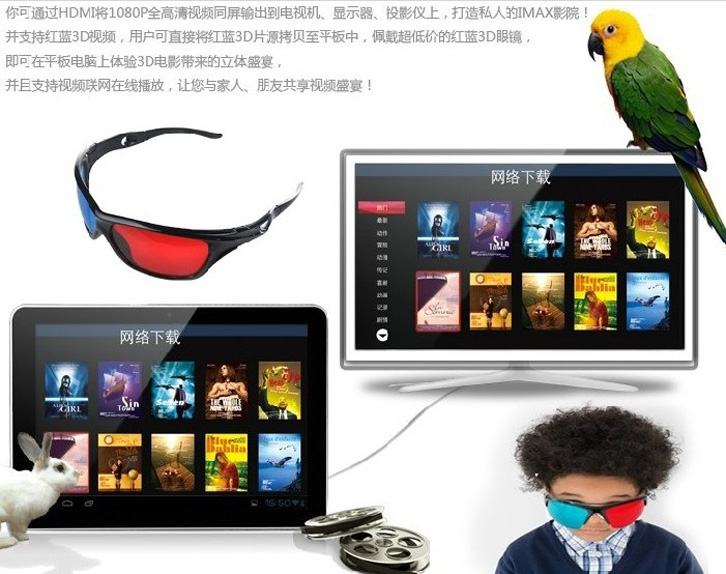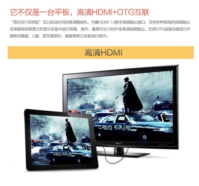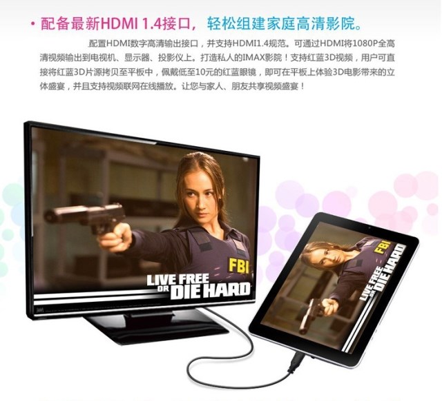 接口:迷你雙USB,音頻輸出,TF內(nèi)存卡口,電源接口,耳機接口,HDMI高清輸出