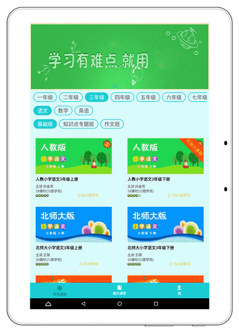 小學(xué)、初中、高中9門學(xué)科同步輔導(dǎo),完全模擬學(xué)校教學(xué)模式,與老師授課同步,幫助孩子做好課前預(yù)習(xí)、課堂學(xué)習(xí)、課后復(fù)習(xí),吃透課本,夯實(shí)基礎(chǔ),快速提高學(xué)習(xí)成績。點(diǎn)讀、輔導(dǎo)、視頻、習(xí)題、分析、補(bǔ)習(xí),一站式學(xué)習(xí),方便有序!
