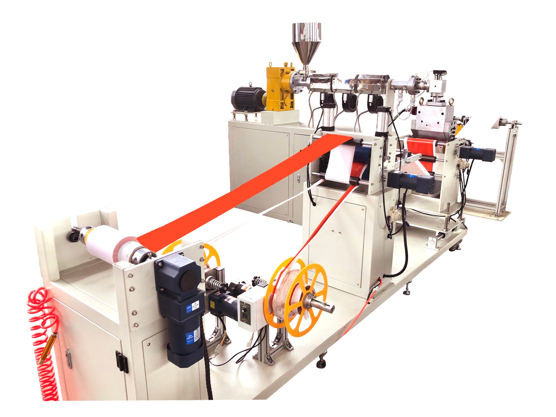 市場上的新型流延機(jī)具有堅(jiān)固的整體結(jié)構(gòu)帶牢固的水平平臺(tái)均勻地支撐不斷移動(dòng)的流延面,流延面由鋼帶、聚酯承載帶或兩者一起構(gòu)成。全密封流延機(jī)提供一種干凈的室內(nèi)環(huán)境,減少無謂的空氣和污染物的滲入。觀察門配鋼化玻璃和密封墊圈,允許快速、方便地接近流延段及所有其他功能區(qū)段。