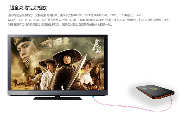 支持RMVB、AVI、MPEG-4、htm、DIVX、WMV、F4V、FLV 等格式;支持優(yōu)酷、迅雷、土豆、奇藝等網(wǎng)絡(luò)視頻在線播放(部分功能要相關(guān)的APK應(yīng)用程序支持) |